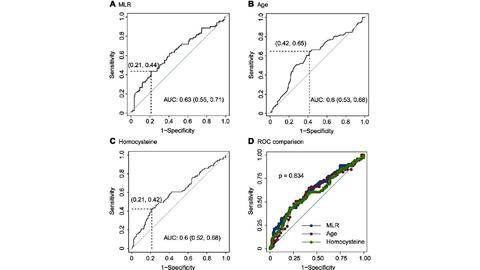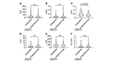 Results: The average age of 273 COVID-19 patients enrolled with imaging progression were older than those without imaging progression (p = 0.006). The white blood cells, platelets, neutrophils and acid glycoprotein were all decreased in imaging progression patients (all p < 0.05), and monocytes were increased (p = 0.025). The parameters including homocysteine, urea, creatinine and serum cystatin C were significantly higher in imaging progression patients (all p < 0.05), while eGFR decreased (p < 0.001). Monocyte-lymphocyte ratio (MLR) was significantly higher in imaging progression patients compared to that in imaging progression-free ones (p < 0.001). Logistic models revealed that age, MLR, homocysteine and period from onset to admission were factors for predicting imaging progression on chest CT at first week from COVID-19 patients (all p < 0.05).