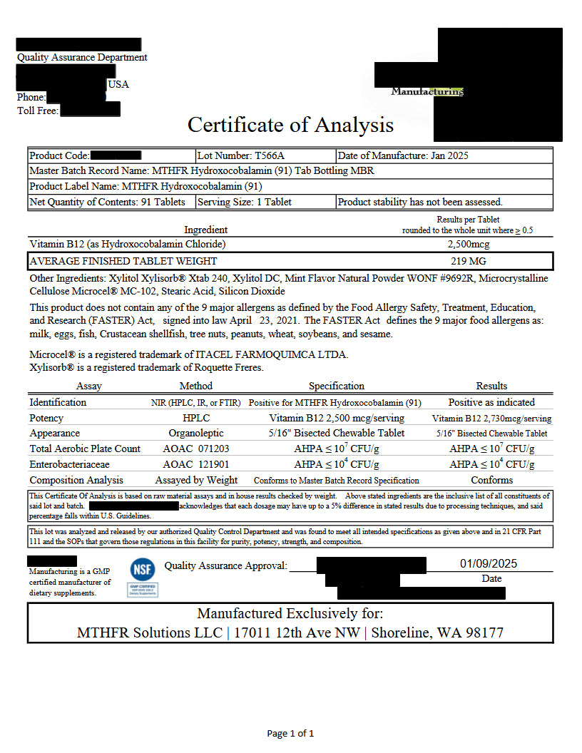 Active B12: Supports neurological function, energy production, and red blood cell formation.