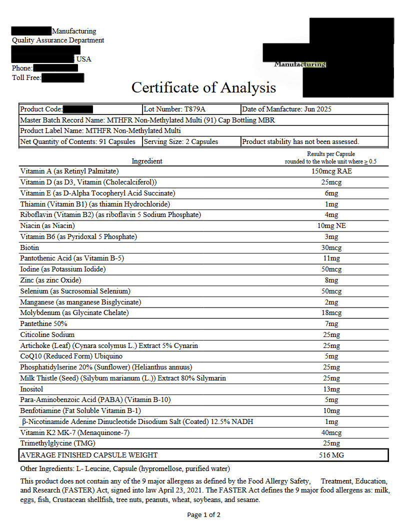 - Non-Methylated Multivitamin - Methylation supporting multivitamin with Cognitive and Energy-promoting nutrients (designed to be taken with therapeutic levels of methylfolate & B12)