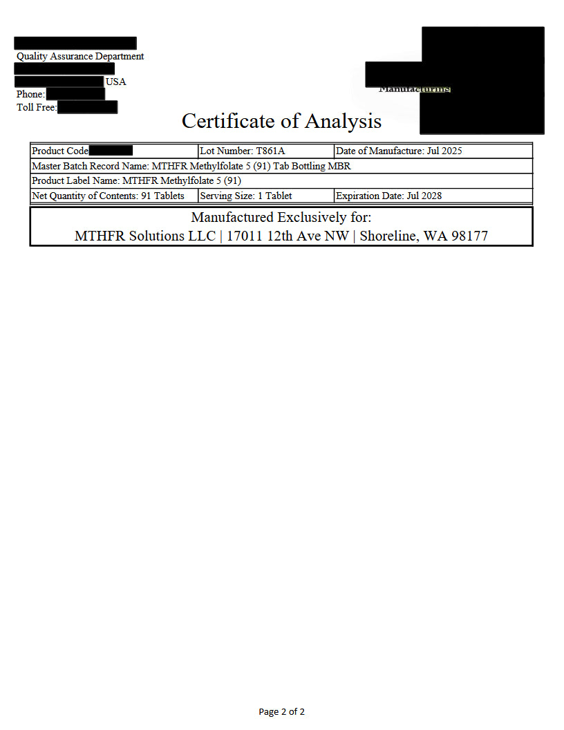 Methyl-Life’s® Methylfolate is an active form of folate that can bypass the MTHFR mutation. It is already in its metabolized form, which means it can be readily absorbed and utilized in the body for many biochemical reactions.