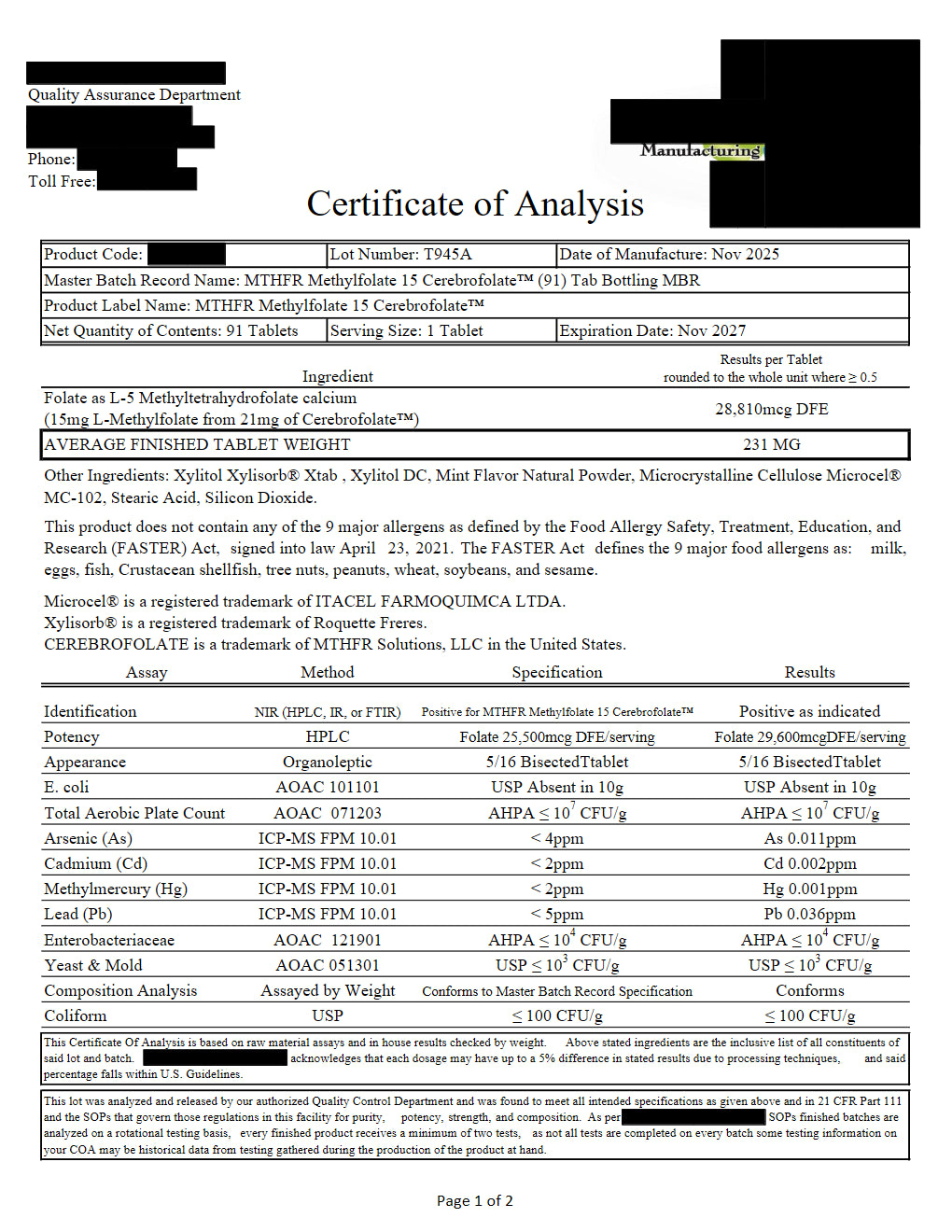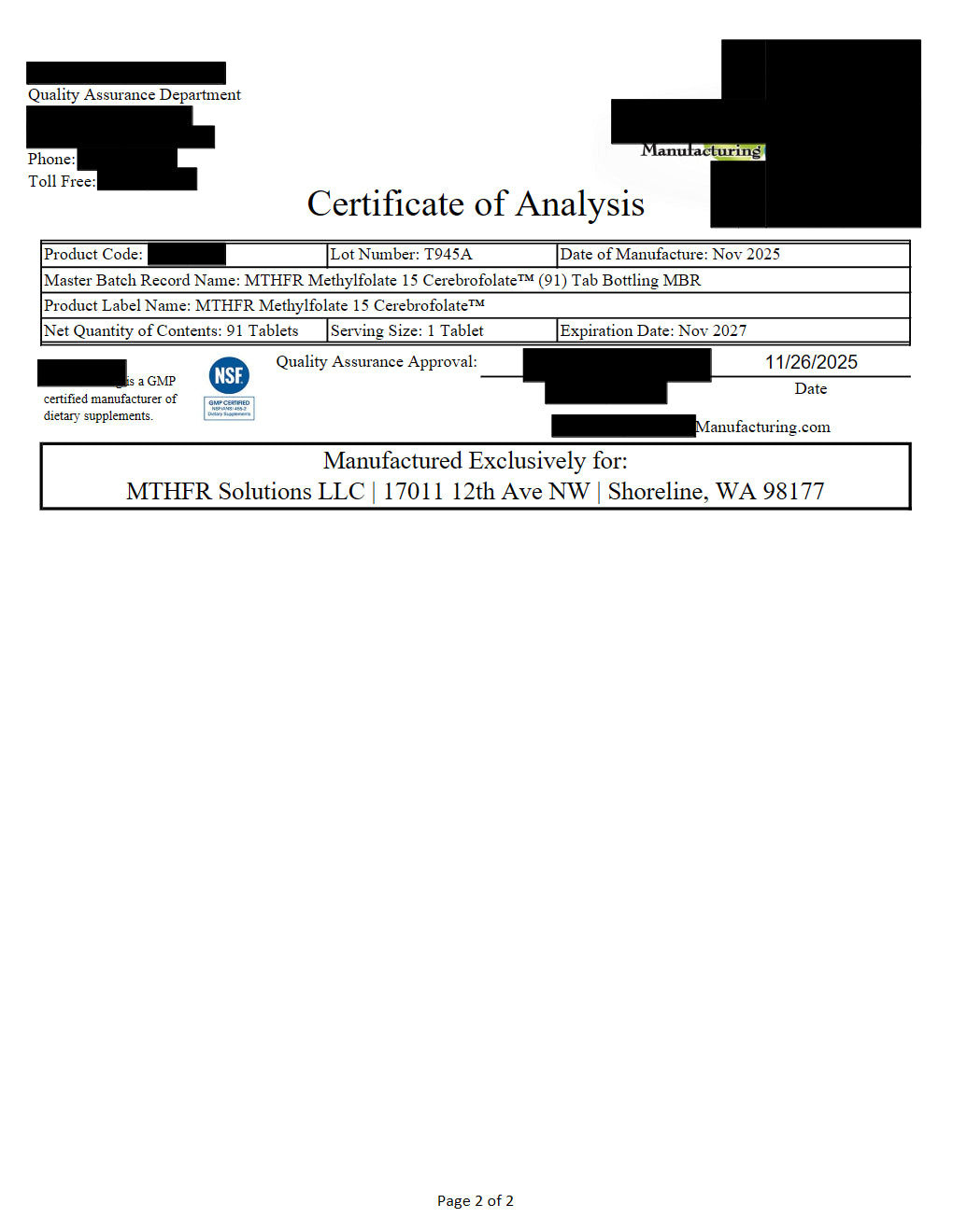 Manufactured in an NSF-certified, cGMP-compliant facility registered with the FDA, Methyl-Life® sets the standard for clinical-grade supplementation.