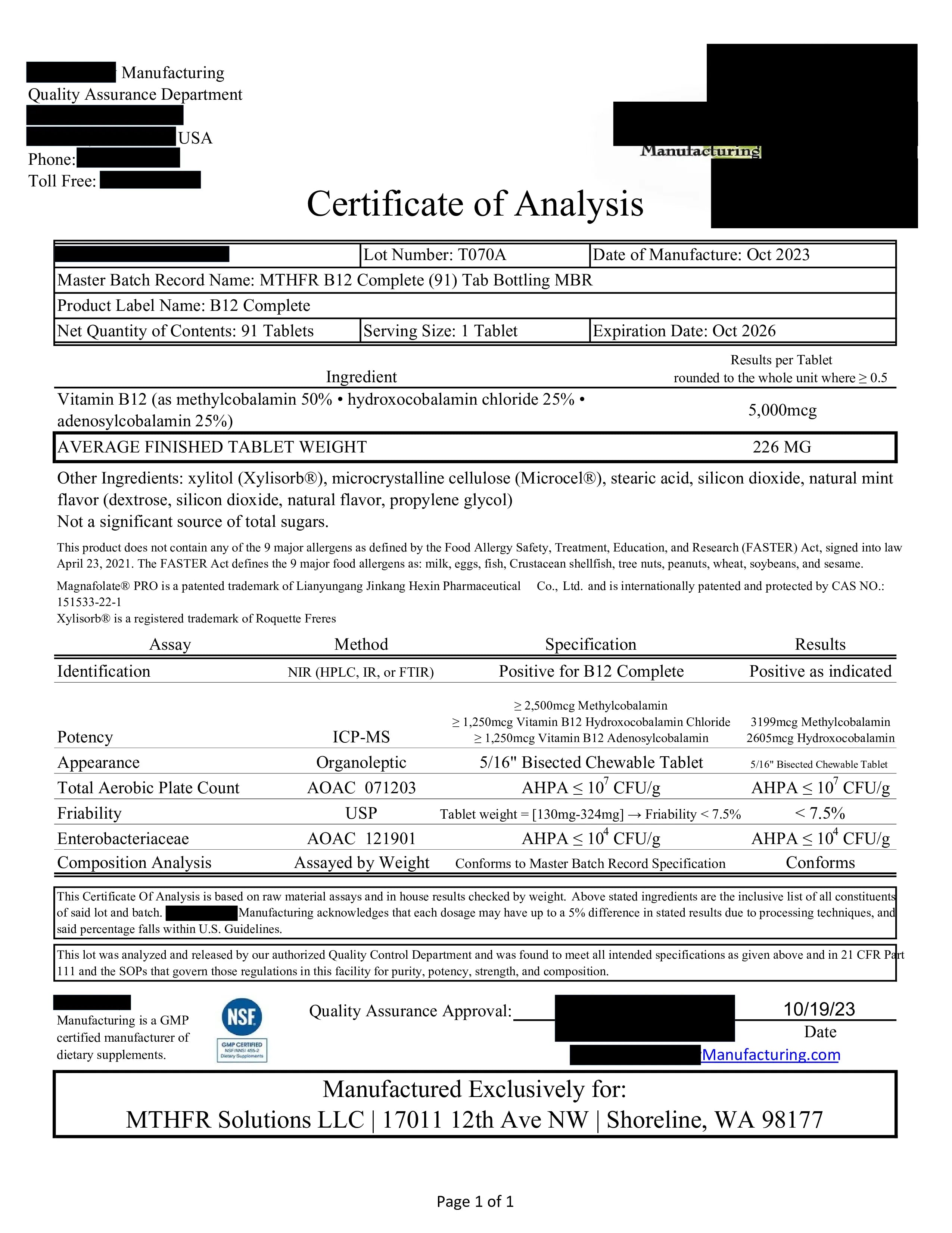 - All 3 active forms of B12 (as Methylated-B12, Hydroxy B12, & Adenosylcobalamin) for a full-spectrum mechanism of action