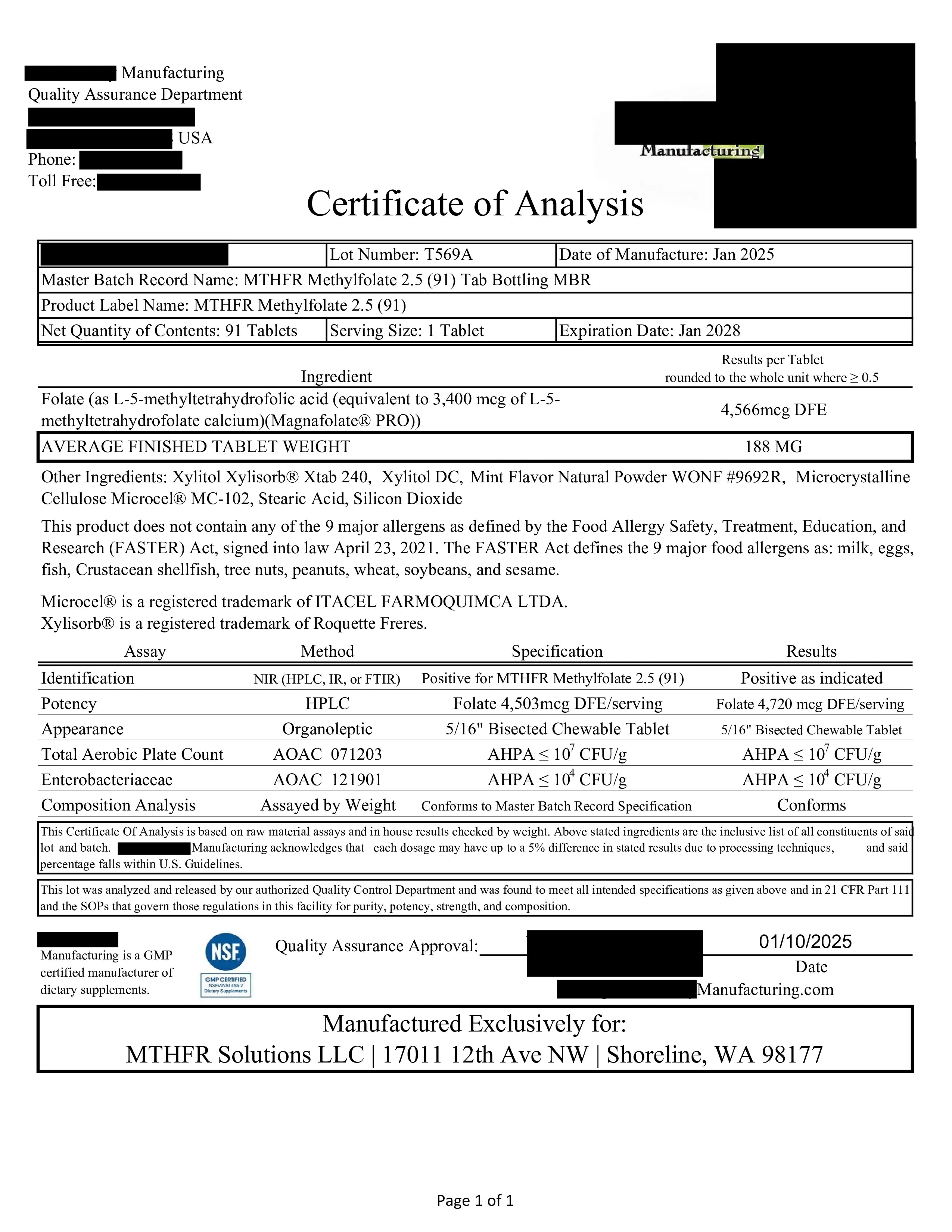 - L-Methylfolate 2.5 - Purest & most stable L-Methylfolate available on the market